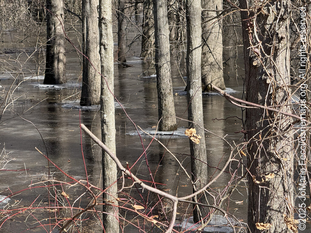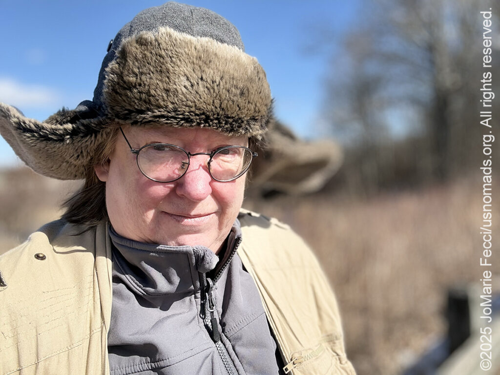 17 February 2025: Cold sub-freezing temperatures and strong winds accompanied us as we crossed the first four states — NY, NJ, PA, WV. I usually plan the route around a series of stops where I can go exploring, take a hike, look for wildlife or learn some interesting history, but the weather forecasts for the whole middle of the USA this week is just WINTER and WORSE WINTER, so I think I will just try to drive as much as I can to get to the southwest sooner and hopefully find the sun. Today’s planned detour turned out to be just a short stop due to freezing cold temperatures, wind, and the fact that so much of the landscape was frozen over. It was the first time I stopped to check out the Great Swamp National Wildlife Refuge in New Jersey, though I had seen signs for it and wondered about it many times. With ice everywhere and brutal cold winds, I wasn’t really up for a long hike (and I don’t think the wildlife were doing too much venturing outside anyway) but I did do a little bit of exploring. Drove Long Hill Road into the swamplands and checked out a couple of observation points, where I observed frozen wetlands and attempted to take a short walk, but kept getting frustrated while trying to take photos because I had to keep taking off my gloves! From the swamp I got back on the road and made it through Pennsylvania and into West Virginia passing snow-covered mountains along the way …