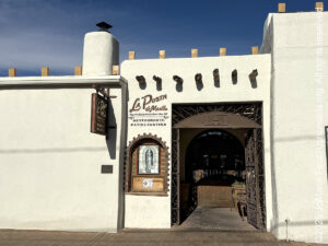 Established on Mexico’s northern frontier in 1848, west of the Rio Grande and El Camino Real de Tierra Adentro, Mesilla was a small town of vertical log and adobe plaster jacales built along the perimeter of a formal plaza as a means of community defense against area Apaches. With the 1849 discovery of gold in California, the town became a prime location on the southern route to California. By the time of the 1854 Gadsden Purchase when it became part of the U.S. Territory, Mesilla was a hub of culture, transportation and trade. With more than 2,500 residents by the close of the 1860s, Mesilla was the biggest city between San Antonio and San Diego. By the 1870s, it was the county seat and the Mesilla Valley’s leading center of trade. In addition to El Camino Real, the town’s trade connections were maintained through a variety of stage, freight and mail routes, including the Butterfield Overland Mail, San Antonio Mail and Wells Fargo Express. At various times, these operations were based in the town’s “transportation block” at the plaza’s south end. With its theaters, shops, saloons and local color, Mesilla drew visitors from throughout the Southwest and Mexico looking for a good time. Billy the Kid was a frequent Mesilla visitor who spent time as an inmate at the Territorial-style adobe jail and courthouse on the plaza’s southeast corner. More well-mannered visitors stayed across the street at the Corn Exchange Hotel, a rambling, single-story adobe compound with brick coping and parapets and an interior courtyard. Constructed as early as 1854, the building was an important stop on the Butterfield stage line before the hotel opened in 1874. Since 1939, the 10,000-square-foot building has been home to La Posta de Mesilla…