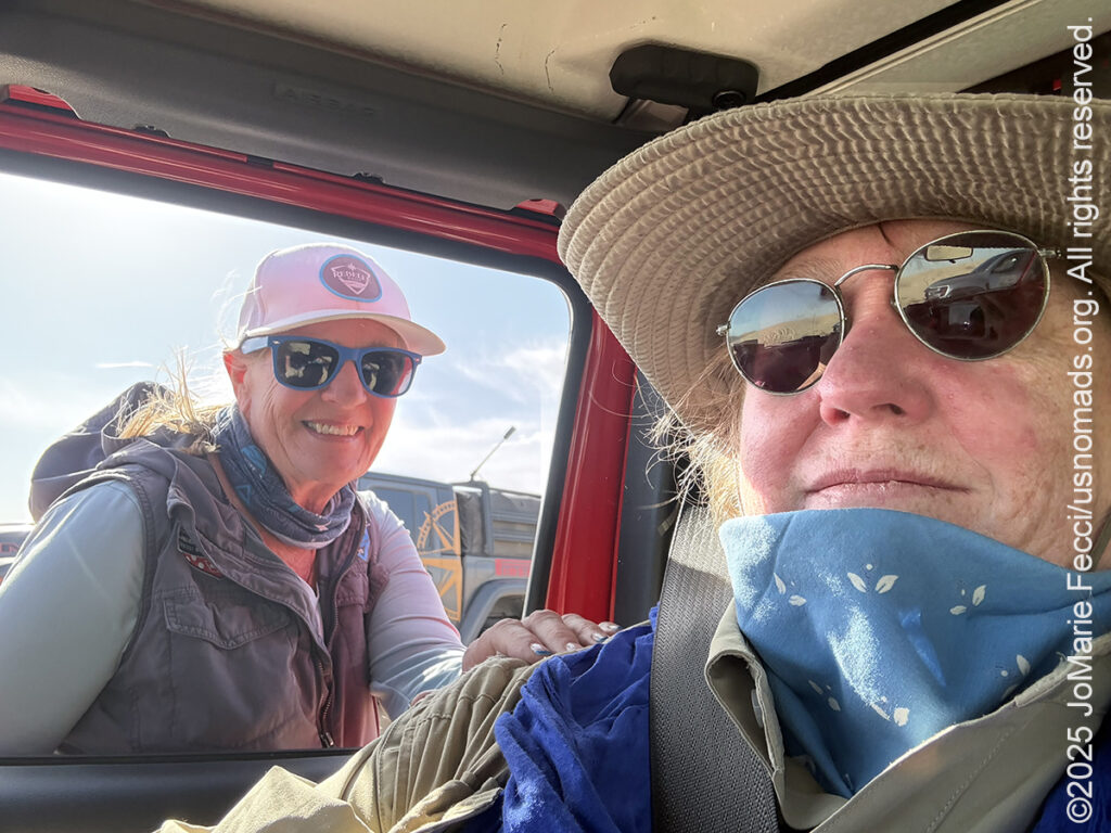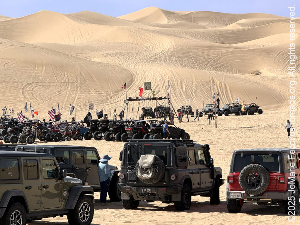 1 March 2025: One of my favorite days of the annual Barlow Adventures dune training is when we get to go into the really big dunes. It is usually the most exhausting day, and this year was no different in that sense. However the big difference for me was that I am part of a team that is taking the training this year, rather than being part of the larger Barlow Adventures family. And I am not doing the driving! As I will be navigator during the rally, and also as Jody really needs to learn to drive the Jeep in the dunes — she gets to do all the driving today. Still it’s been a fun day out here and great to see her build up her confidence in this intimidating terrain. Very glad that we all got to go out to the swingset, even if it was challenging for some of us. Just making it there is a confidence booster for the drivers, and it’s always fun to play in the sand…