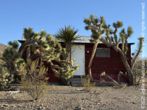 Searchlight experienced a significant gold mining boom in the late 1890s and early 1900s. Gold ore was first discovered in Searchlight by Paiute Indians in 1870, 55 miles south of Las Vegas, but it was not until 1897, when George Frederick Colton, a notable prospector, discovered a rich gold vein and word spread, that Searchlight boomed. The Quartette Mill opened in 1898 and soon became one of the city’s finest producers. In 1902 the first newspaper, Searchlight, began publishing, and a twenty-stamp mill was constructed by the Duplex Mining Company. In 1903 a miners’ strike brought the town’s production to a standstill until the mining companies brought in non-union miners to work the mines. The boom peaked during the spring of 1907 when the first train of the Barnwell & Searchlight Railroad arrived in Searchlight’s station to a warm greeting of a fifty-piece cowboy band. The town reached a peak population of 5,000 with 44 working mines before being hard hit by the financial panic of 1907. The city recovered after a number of years and by 1910 was noted for its fashionable and modern amenities and its commuter train. The community boasted a luxurious hotel, several saloons, a barbershop, lumberyard, shops, cafes, union halls, boarding houses, schools, several stables, the newspaper, and its own hospital. The biggest mines were the Quartette, Cyrus Noble, Little Brown Jug, Old Bottle, and Duplex, whose gold production totaled $7 million. In 1934 a flotation mill was built and a 30-ton custom mill ran briefly in 1935. The town had a resurgence with the construction of the nearby Hoover Dam and was the site of the El Rey Bordello in the 1940s and early 1950s until the bordello burned down. However, by then little was left of the once modern boomtown of Searchlight. The last gold mine ceased operating around 1953…