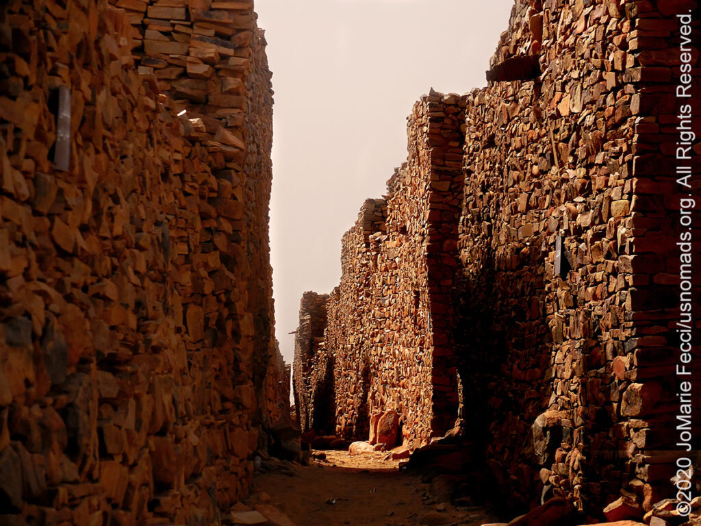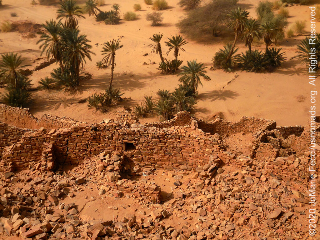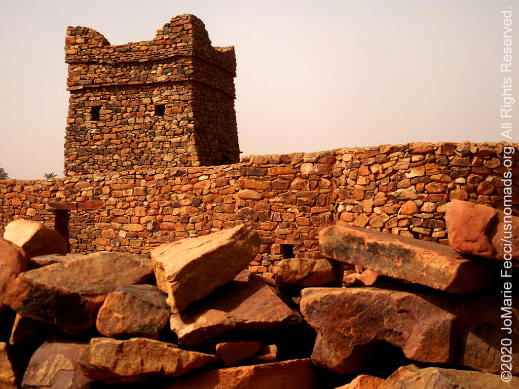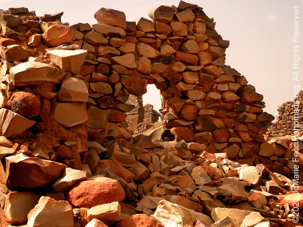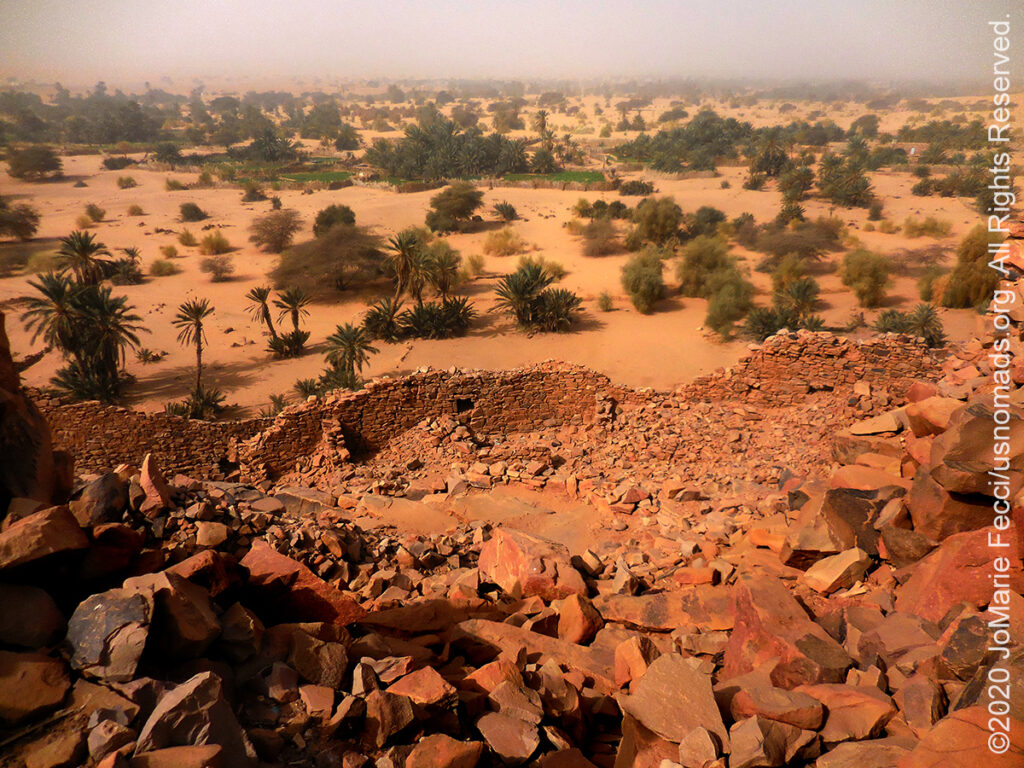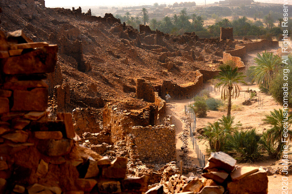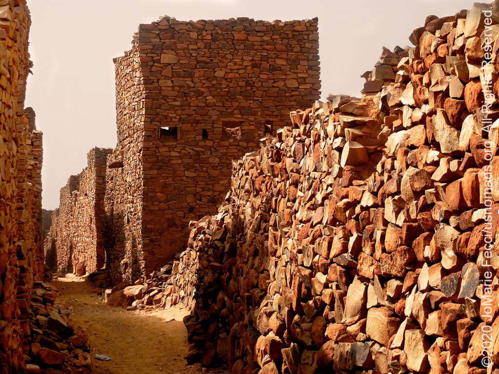 On the horizon a massive stone city the color of earth through a haze of blowing sands seems to rise up out of the desert itself. As the distance between us closes I can see its towers crumbling into an otherworldy landscape of ruin. Ouadane, on the southern edge of the Adrar Plateau in Mauritania, had once been a staging post in the trans-Saharan trade and a stop for caravans transporting slabs of salt from the mines at Idjil. Now its remains are protected as a UNESCO World Heritage Site.