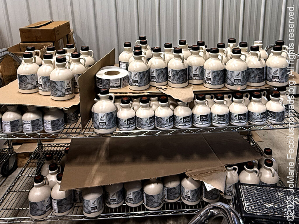 And that’s important because the demand for quality maple syrup is growing. Vermont produces about 50% of the Maple syrup in the United States and, according to Jacob, that demand has quintupled over the past 15-20 years as people want more natural and less processed sugars. People are also finding new and innovative ways to use maple syrup — they are cooking with it and using it in marinades and baking as well as mixing it into different kinds of beverages. Small family farms like the Bairds remain competitive by focusing on quality, which starts with an organic “certification.” All the Baird Farm products are certified organic and all the work is done personally by the family members–including tapping all those trees.