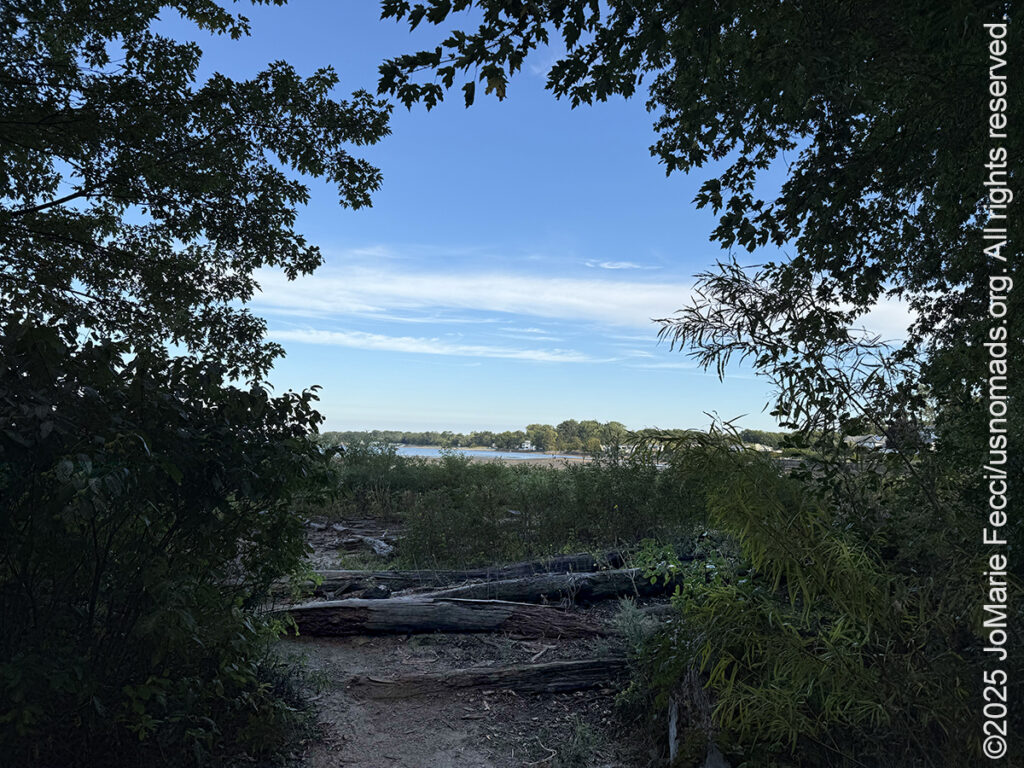 It was a good time of day to begin scouting for beaver activity and so I headed towards Shelburne Bay, looking for the location the birder had described. It wasn’t far from the farm, and as I reached the parking area for the boat launch the sun was beginning to get a little bit lower in the sky, though there was still more than an hour until sunset. I took a quick walk around the boat launch which led into the bay, but on the other side of a small bridge was a slow moving creek that looked more likely to be “beaver territory”. I could see that there was a walking trail, just as the birder had mentioned, and a sign said it was the LaPlatte River Marsh Natural Area, so I decided to check it out. The trail was a little bit overgrown and there were wooden planks stretched out over heavily rutted dried mud. I imagined it might actually be wet if it weren’t for the drought (and I was actually glad it was dry because my balance isn’t great, and I didn’t have my boots on). I followed the path a little ways until I came upon a random bench placed on a steep bank overlooking the stream. It was the first spot where there was a clearing with a view down to the water and I wanted to see if I could see any indication of beaver presence. I could only see a small section of the stream, and there were no lodges or dams within sight, but for some reason I decided to just stop and sit on the bench for a few minutes, just observing the water. It was a beautiful afternoon and I was trying to figure out how far along the trail I should go and if I should wait until after sunset when I might have a better chance of actually seeing a beaver, but I was also concerned about trying to make my way back across the narrow boards (some of which were quite rotted and seemed like they might break under my weight) in the dark. I hadn’t brought my hiking stick or my headlamp, as I thought it would be a quick in-and-out walk, but now I had to make a decision.