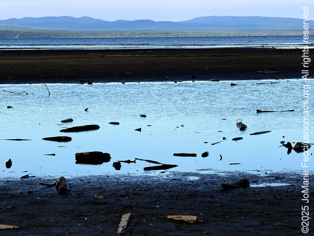 From here it was hard to tell where the river ended and the lake began and even the earth under my feet seemed to be in transition, solid in one spot and soft sinking mud in the next, as if it couldn’t decide if it wanted to be dry land or under water. I guess this is what a delta is, a transition zone between the water and the land. From all the downed trees it also seemed a bit like nature’s dumping ground. I don’t know where the trees came from or how they fell or why they ended up here, but it was strangely beautiful in a desolate way and I was just appreciating the ephemeral nature of the scene as the morning light continued to transform the colors and textures of everything around me.